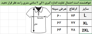 جدول سایزبندی تیشرت لش سبز کد 10316