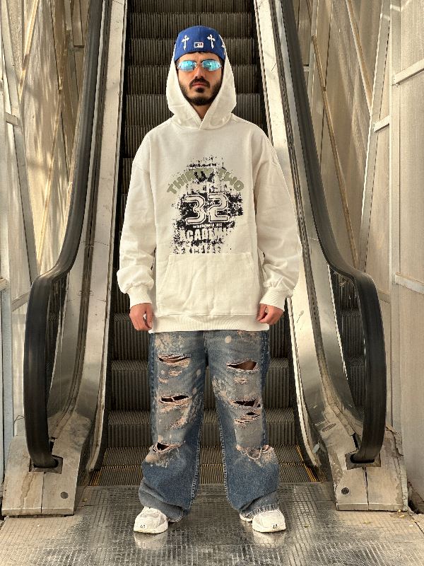 هودی طرحدار سفید کد ۱۰۷۳۴